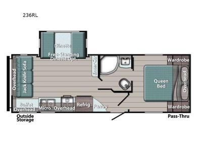 Sleeps 5 Slides 1 Length 28 ft 1 in Ext Width 8 ft Ext Height 11 ft 3 in Int Height 6 ft 8 in Hitch Weight 930 lbs Dry Weight 5140 lbs Cargo Capacity 2790 lbs Fresh Water Capacity 23 gals Grey Water Capacity 34 gals Black Water Capacity 34 gals Tire Size 14" Furnace BTU 20000 btu Available Beds Queen Refrigerator Type Everchill Refirgerator/Freezer Refrigerator Size 10.7 cu ft Cooktop Burners 3 Number of Awnings 1 LP Tank Capacity 20 lbs Water Heater Type Tankless AC BTU 13500 btu Awning Info Electric with LED Light Axle Count 2 Number of LP Tanks 2 Shower Type Neo-Angled Electrical Service 30 amp Similar Travel Trailer Floorplans