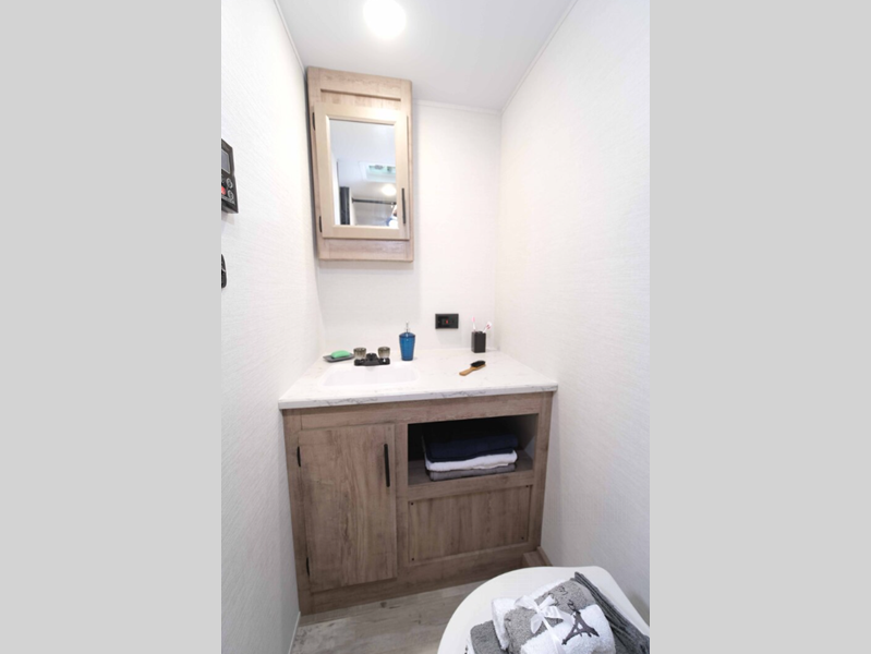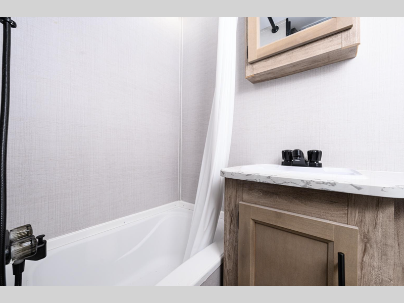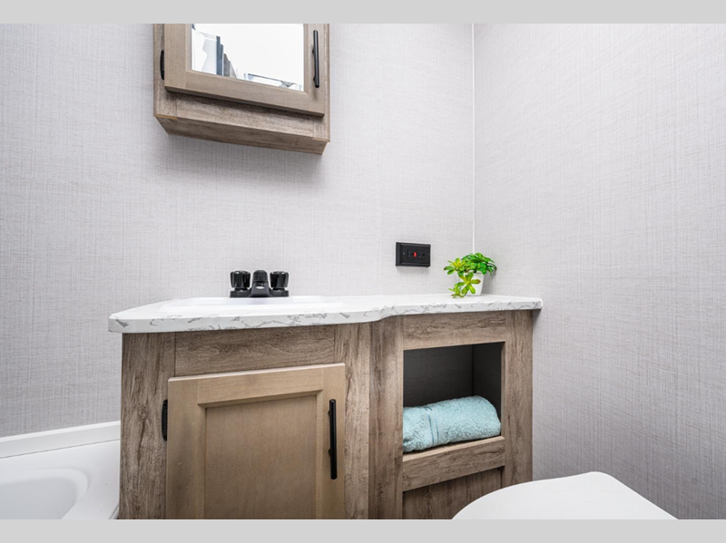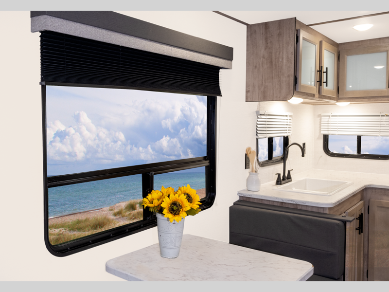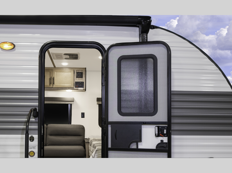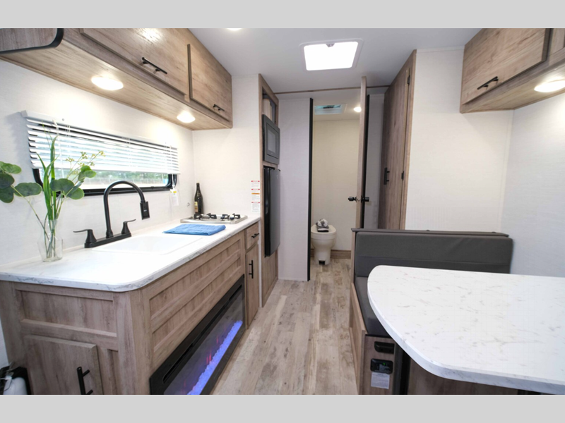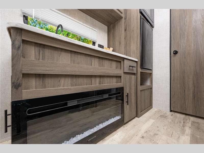 Some of the features you'll find with each model are the craft-made cabinetry, high-performance vinyl flooring, and laminated countertops with vinyl T-molding. The fully-equipped kitchen will allow you to make your best meals while you're away from home, and of course full bath amenities on board make camping easier than ever. There is also a 13,500 BTU A/C and 20,000 BTU furnace (n/a 177BH 178RB) to keep you comfortable year around, and the power awning outdoors will provide a place to relax with a cold drink. Both models 177BH and 178RB feature an electric fireplace in place of the furnace.