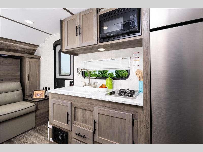 Sleeps 3 Length 20 ft 11 in Ext Width 8 ft Ext Height 10 ft 4 in Int Height 6 ft 8 in Hitch Weight 360 lbs Dry Weight 2920 lbs Cargo Capacity 1080 lbs Fresh Water Capacity 23 gals Grey Water Capacity 36 gals Black Water Capacity 36 gals Cooktop Burners 2 Number of Awnings 1 LP Tank Capacity 20 lbs Water Heater Type Tankless AC BTU 13500 btu Awning Info Power Axle Count 1 Number of LP Tanks 1 Shower Type Standard Electrical Service 30 amp Similar Floorplans