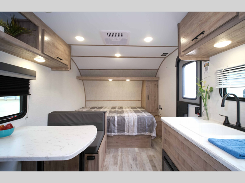 Sleeps 5 Length 22 ft 2 in Ext Width 8 ft Ext Height 10 ft 8 in Int Height 6 ft 8 in Hitch Weight 638 lbs Dry Weight 3663 lbs Cargo Capacity 1395 lbs Fresh Water Capacity 23 gals Grey Water Capacity 36 gals Black Water Capacity 36 gals Furnace BTU 20000 btu Available Beds Murphy Queen Refrigerator Type 12 Volt Refrigerator Size 10 cu ft Cooktop Burners 2 Number of Awnings 1 LP Tank Capacity 20 lbs Water Heater Type Tankless AC BTU 13500 btu Awning Info Power Axle Count 1 Number of LP Tanks 1 Shower Type Standard Electrical Service 30 amp Similar Floorplans