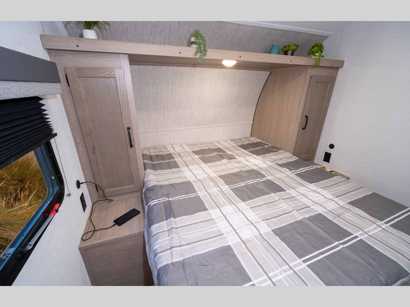 Sleeps 3 Slides 1 Length 22 ft 11 in Ext Width 8 ft Ext Height 11 ft 2 in Int Height 6 ft 8 in Hitch Weight 400 lbs Dry Weight 4360 lbs Cargo Capacity 3027 lbs Fresh Water Capacity 36 gals Grey Water Capacity 29 gals Black Water Capacity 29 gals Tire Size 14" Furnace BTU 20000 btu Available Beds Queen Refrigerator Type Everchill Refrigerator/Freezer Refrigerator Size 10.7 cu ft Cooktop Burners 3 Number of Awnings 1 LP Tank Capacity 20 lbs Water Heater Type Tankless AC BTU 13500 btu Awning Info Electric with LED Lights Axle Count 2 Number of LP Tanks 2 Shower Type Radius Similar Floorplans