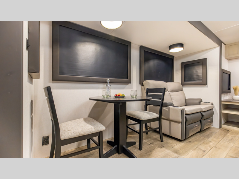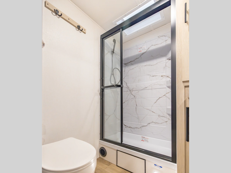 Each is constructed of an aluminum exterior skin, 2x2 wood studs 16" on center or less, fiberglass insulation in all walls, floor and roof, plus Tufflex PVC roof material. The Camping with Ease Package comes a tankless water heater, a 200W solar panel, a Bluetooth portable speaker to listen to your favorite tunes. The Step-Up Package is also accommodating with its power tongue jack, flip-up storage rack, enclosed underbelly, and more!